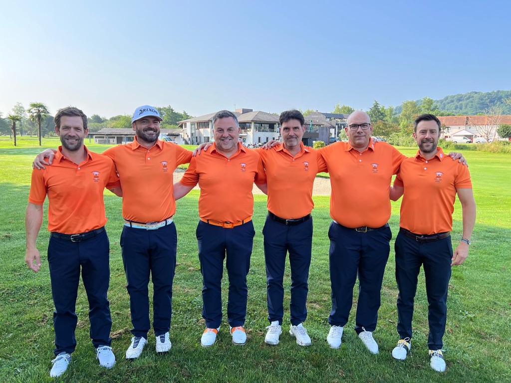 Golf de Pau Artiguelouve notre équipe composée de Romain BIAU, Gérald FLORIS, Stéphane BARBOSA, Nicolas VANDENBUSSCHE, Arnaud MAGNAN et Clément LACOMBE Capitaine performe le premier jour en ne postant que des cartes commençant par un 7 !